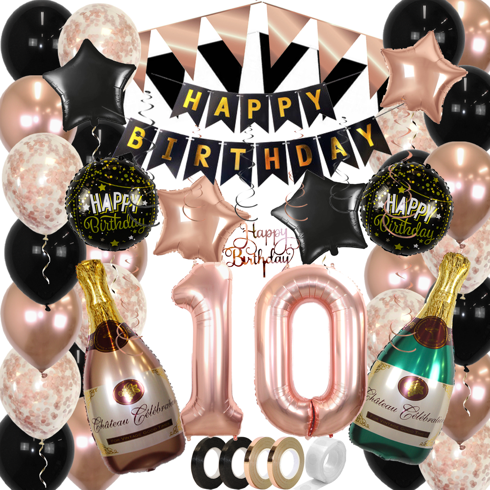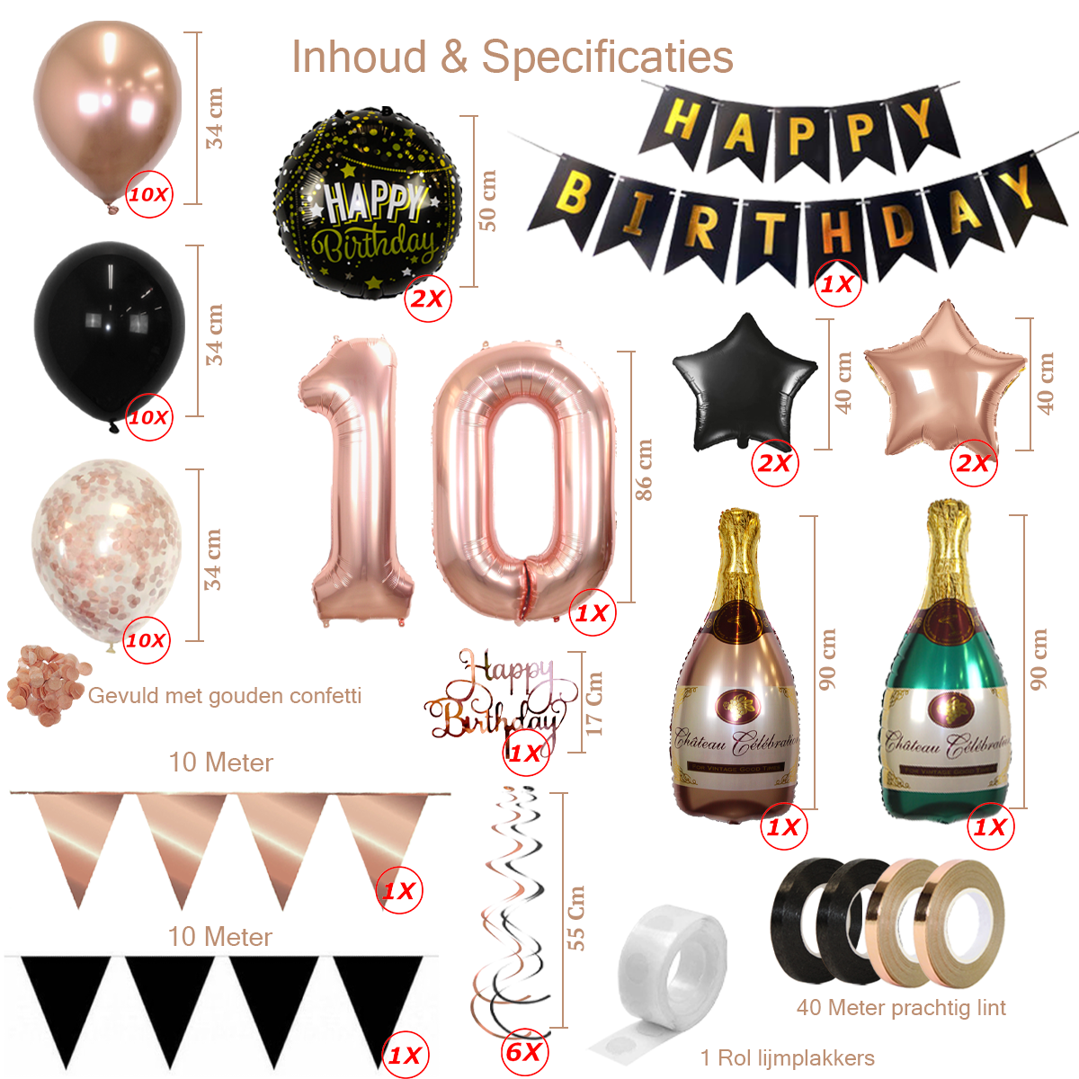 BallonnenpakkettenHappy Birthday BallonnenAccessoiresBeschrijving10 Jaar Zwart Rose Goud Versiering Slingers Pakket