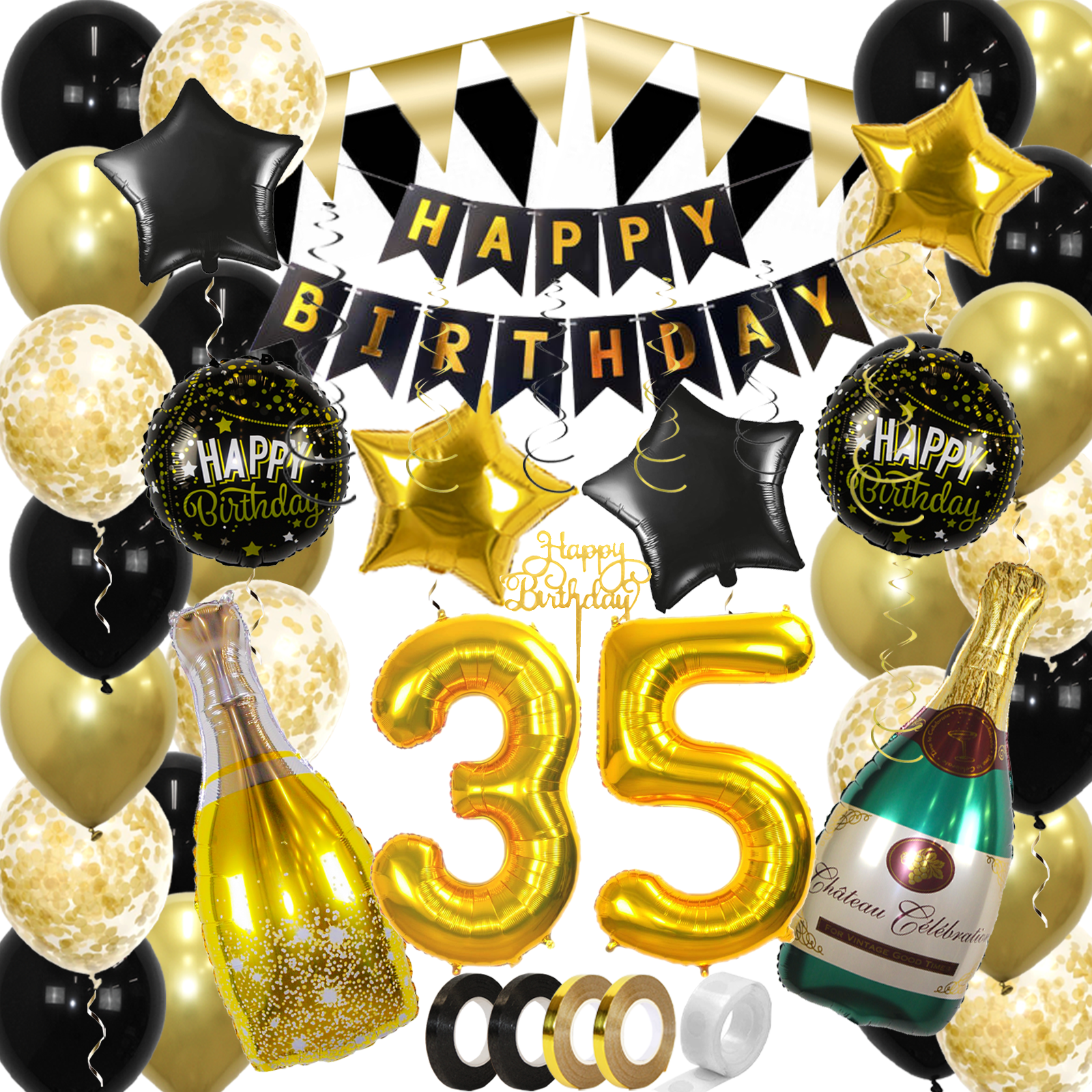 BallonnenpakkettenHappy Birthday BallonnenAccessoiresBeschrijving35 Jaar Zwart Goud Versiering Slingers Pakket