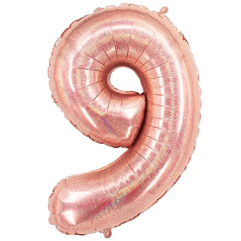BallonnenpakkettenHappy Birthday BallonnenAccessoiresBeschrijvingFolieballon Cijfer 9 Glitter rose goud - XL 86 Cm